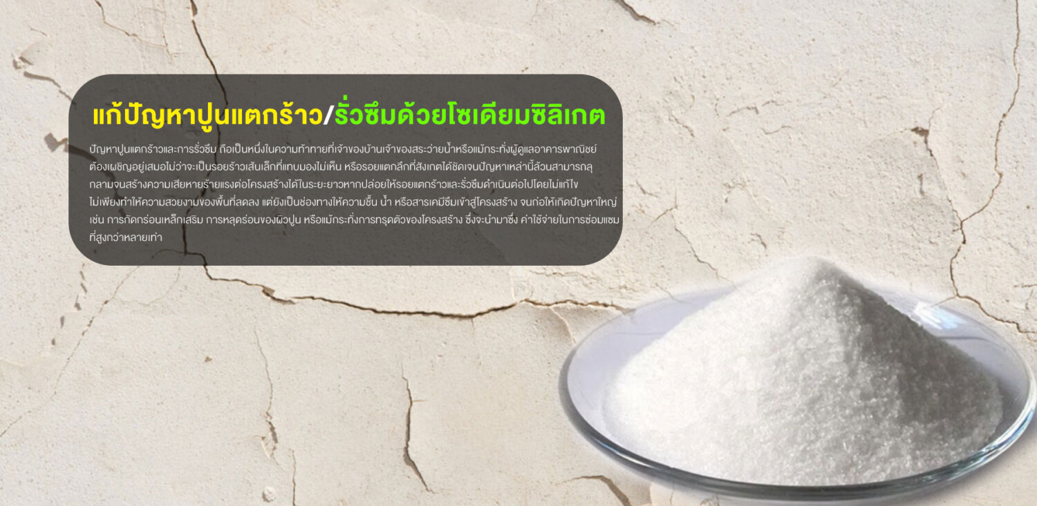 โซเดียม ซิลิเกตเหมาะสำหรับอุดรอยรั่วหรือรอยแตกที่นิ่งและไม่ขยับตัว